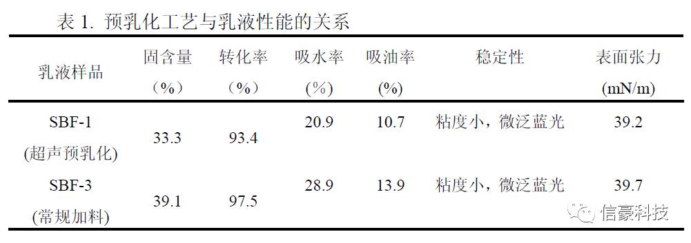 表1. 預乳化工藝與乳液性能的關系
