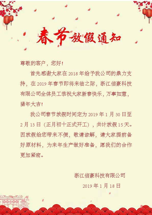 2019年春節(jié)放假通知